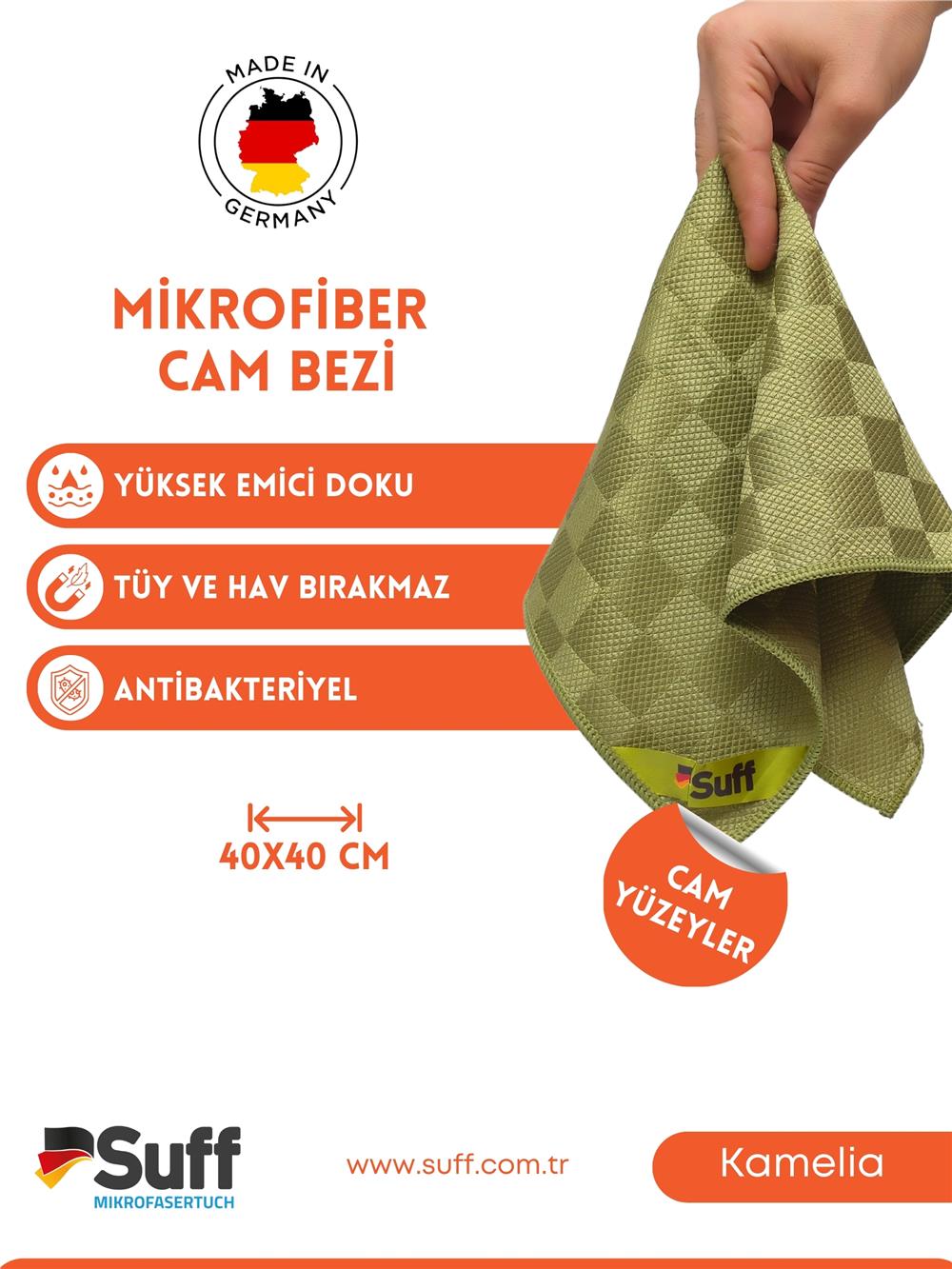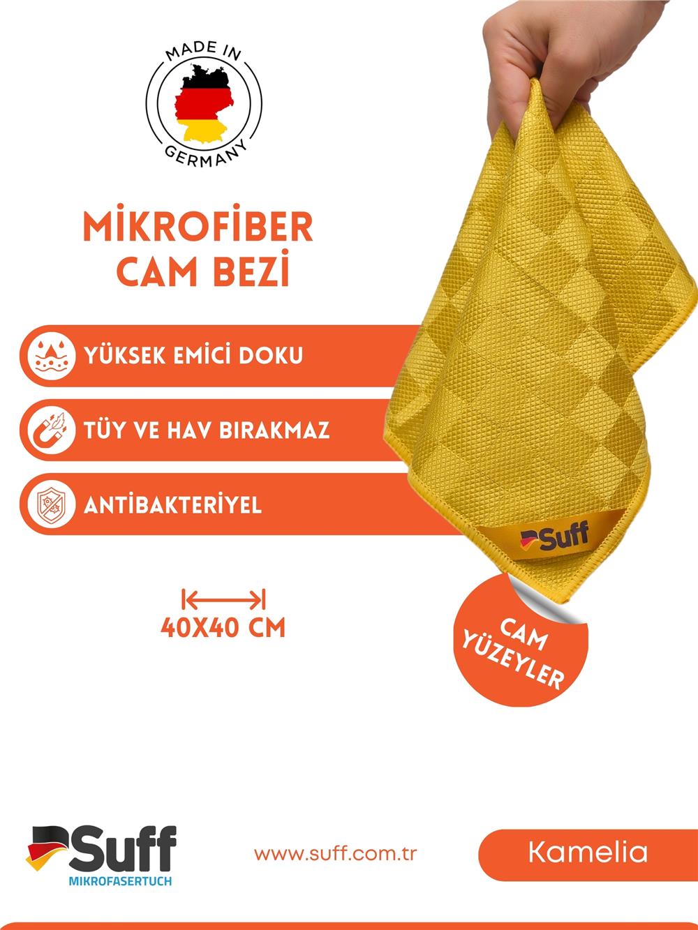 Cam, ayna, plastik, pencere ve pervazlarınızda kusursuz cam temizliği sağlar. Kullanıldığı yüzeyde hiçbir şekilde parmak izi, leke, toz, kir bırakmaz. Sadece duru suyla ıslatıp sıkıp silmeniz yeterlidir, ekstra temizlik malzemesine ihtiyaç duymaz. Tek seferde temizler, ardından kurulamaya ihtiyaç bırakmaz. Kir tutmayan yapıya sahiptir. Uzun süre rengini ve şeklini korur, kullanım süresi uzundur. Özel iplik ve özel dokuması sayesinde uzun kullanım ömrüne sahiptir. Deterjan gibi temizlik maddelerine karşı dayanıklıdır.
